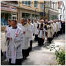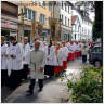 Nach dem festlichen Pontifikalhochamt begleiteten tausende Gläubige den Schrein des Hl. Ludgerus durch die Strassen von Werden. Dieses Jahr hatten sich auch einige Bischöfe eingefunden: Der Päpstliche Legat Joachim Kardinal Meissner, Felix Genn aus Münster, Franz-Josef Bode aus Osnabrück, Luc van Looy aus dem Bistum Gent/Belgien, Bischof Gilbert Louis aus Chalons-en-Champagne/Frankreich, der Nuntius von Guinea und Mali, Erzbischof Dr. Martin Krebs, und die Essener Weihbischöfe Franz Vorrath, Ludger Schepers und Franz Grave waren mit dabei. Der festliche Zug und der Schrein wurde von vielen Eucharistischen Ehrengarden begleitet, die zudem auch dieses Jahr mit den Essener Ehrengarden zum einen die 125-Jahr-Feier Essen-Altstadt sowie die 50-Jahr-Feier des Bistums Essen feiern können.