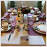 Gegen 9:00 Uhr fuhren wir dann los und ließen unterwegs unsere Reiseleiterin zusteigen. Das erste Ziel unserer Tagesfahrt war in der alten Abtei in Mettlach, das Erlebniszentrum der Firma Villeroy+Boch. Siggi ließ uns an der Bushaltestelle vor der Tür aussteigen. Zunächst trafen wir uns im Innenhof am zentralen Eingang und stiegen 2 Treppen hinauf zum Filmsaal. Auch hier begegnete uns wieder weißer Stuck, der sehr schön aussah. Alle Figuren und Ornamente waren fein herausgearbeitet und detailliert. Zunächst sahen wir uns einen Film mit der Moderation von niemand geringerem als Sir Peter Ustinov an, der uns anschaulich an der vergangenen Firmengeschichte teilhaben lies. Dann folgte ein Rundgang durch die Ausstellung "Keravision und Keramikmuseum" sowie "Tischkultur". Hier konnten wir einen Einblick bekommen in über 250 Jahre Firmengeschichte sowie den Wandel bei Keramiken im Haushalt und an der gedeckten Tafel. Die Fliesen und Kacheln sahen sehr schön aus, filigran gestaltet und bemalt. In der Erlebniswelt "Tischkultur" gab es verschieden gedeckte Tische in unterschiedlichen Umgebungen: im Garten, im Café, festlich gedeckte Tafeln (teilweise mit sehr hochwertiger Tischwäsche), aktuelles und älteres, aber immer äußerst sehenswert bis hin zur Nachbildung einer kleinen Einkaufsstraße mit Boutique von Villeroy+Boch (übrigens Villeroa ausgesprochen).